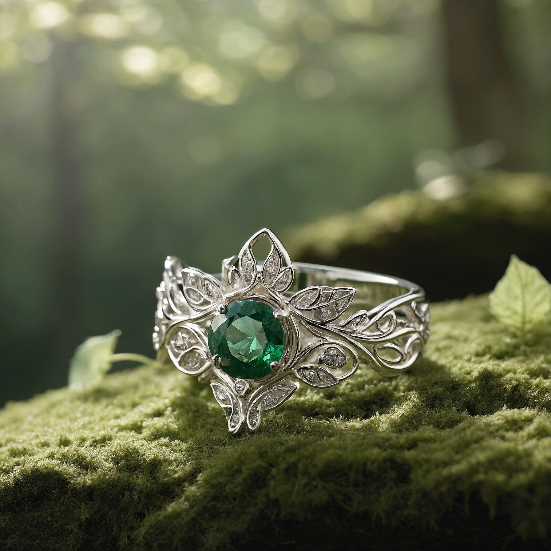 Prompt: "Create a white gold ring, fairy ring that brings the spirit of the forest and nature "