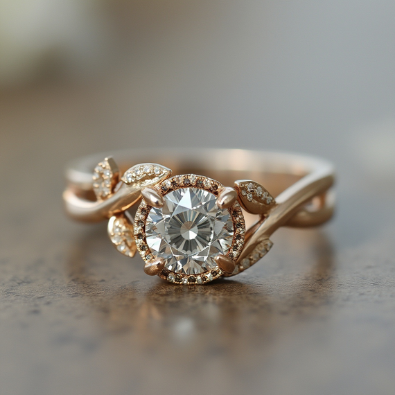 Prompt: "thin curvy diamond band with leaves"