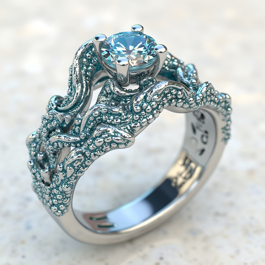 Prompt: "create a white gold engagement ring inspired by the ocean waves"